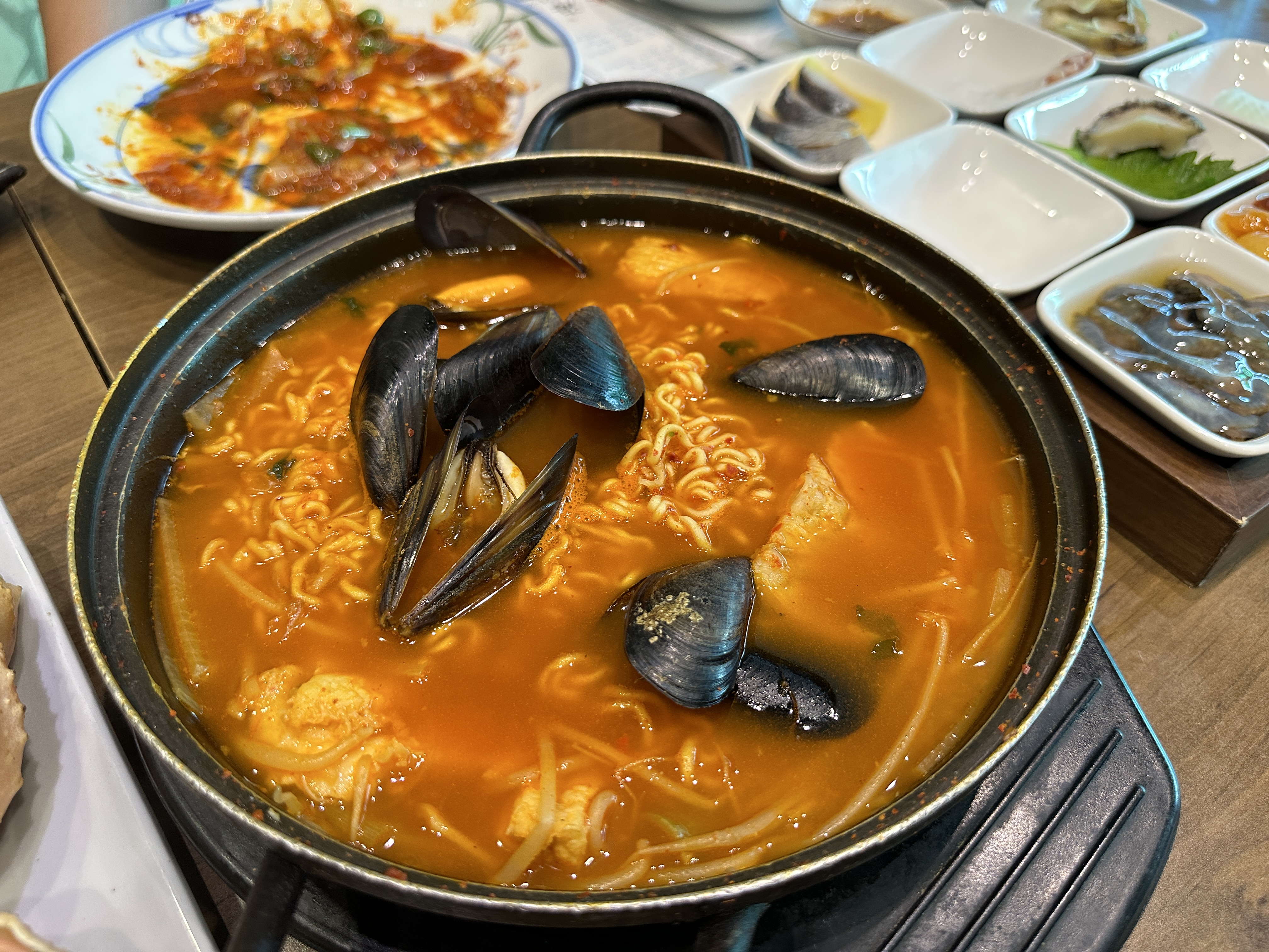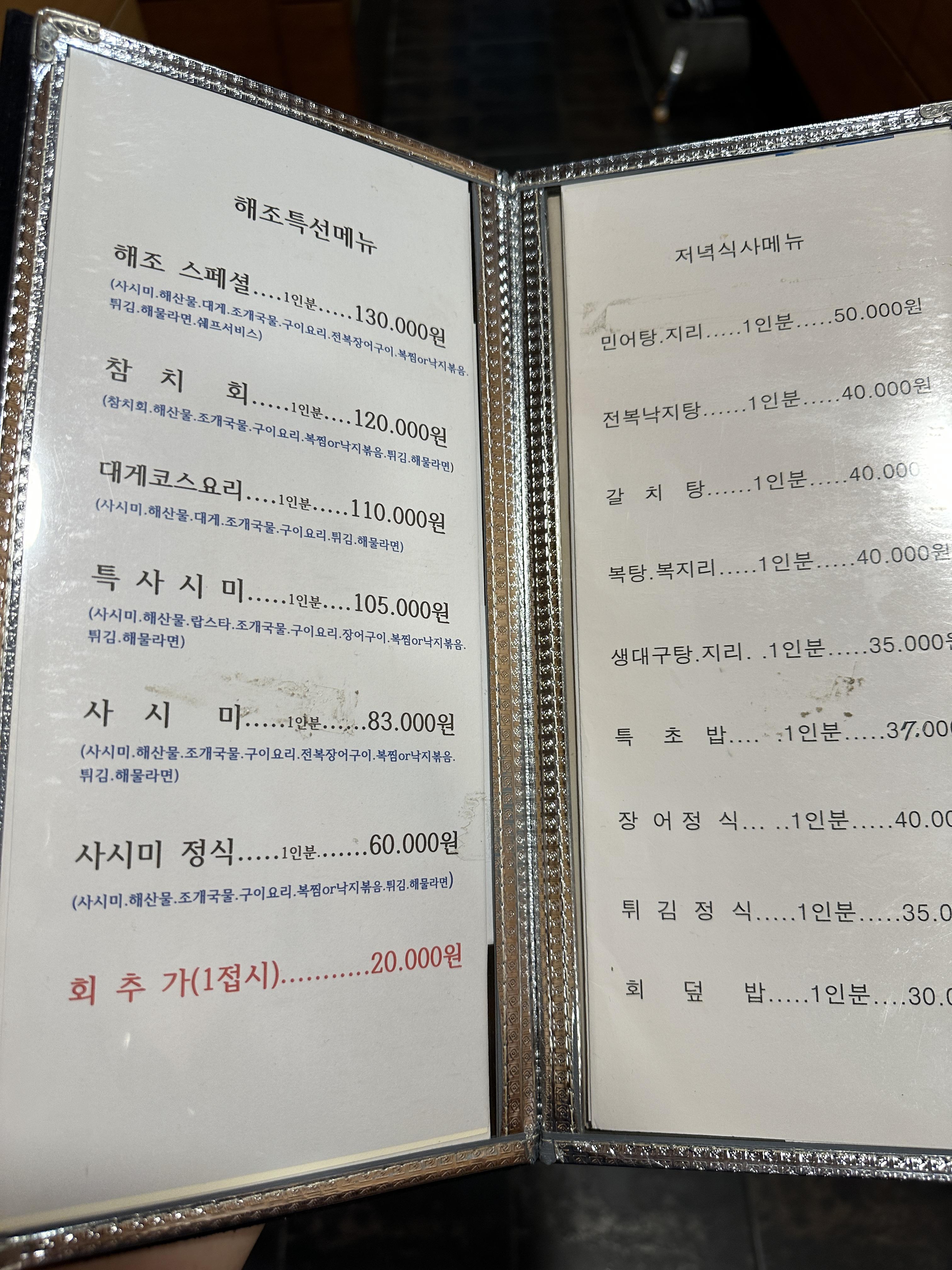 친구 아내가 임신중이라 오늘은 대게코스로 주문 대게코스는 당연 대게가 메인이고 회, 각종 해산물, 생선구이, 튀김, 볶음밥, 해물라면 코스로 정말 배부르게 먹었다.