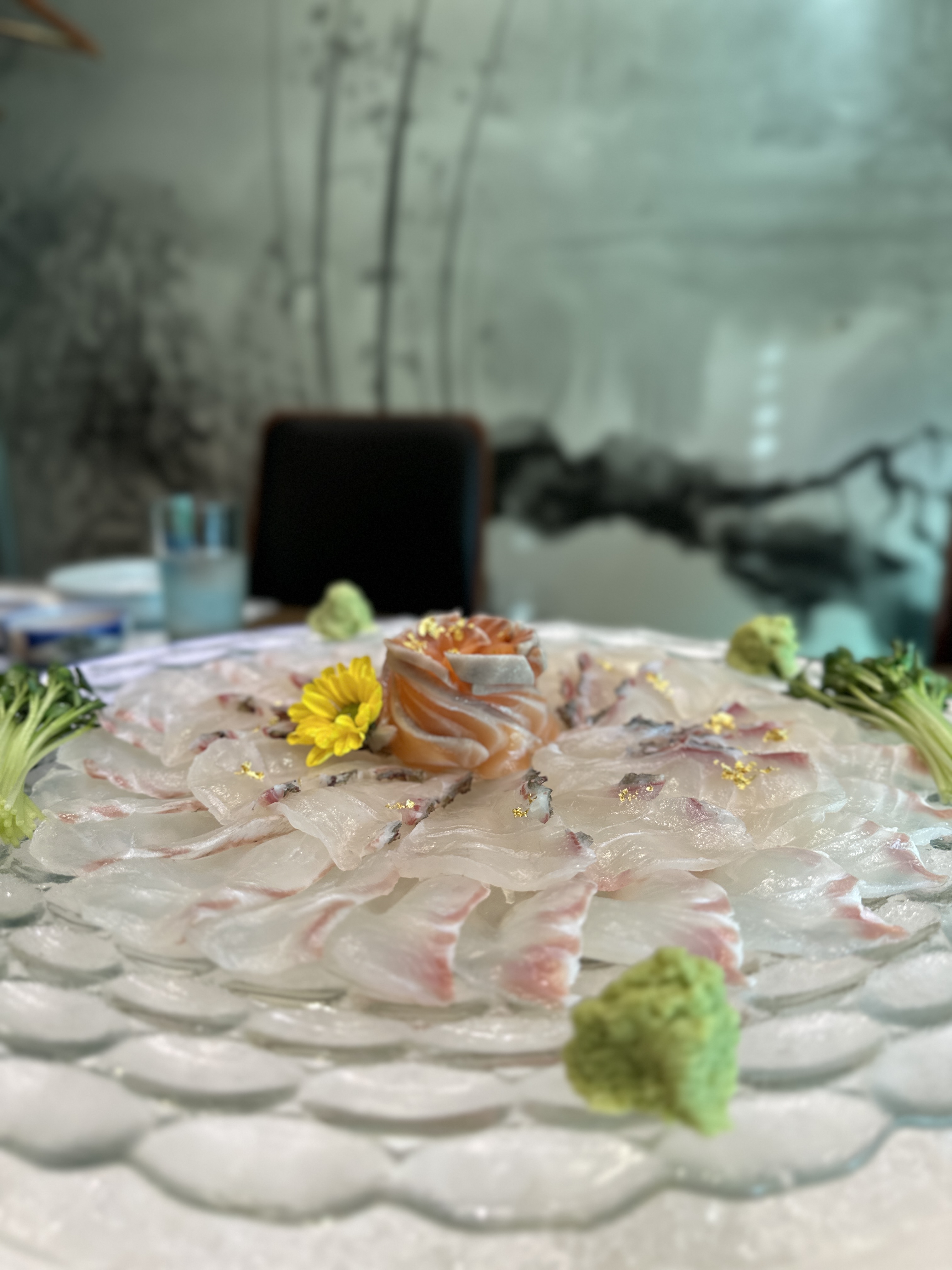 우선 대게찌는 동안에 먼저 나온 회..도미회와 도미숙회 그리고 연어도 작게 나왔다.